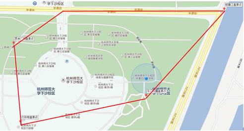 二、活动路线:行政楼→东门花圃→钱塘江堤→学源街-北门→西林广场→行政楼