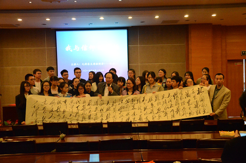2017年4月26日下午1时许,毛泽东的扮演者古云先生来到叙伦厅,发表了《我与信仰的对话》主题演讲,与杭州师范大学学生开展了一场别开生面的交流。