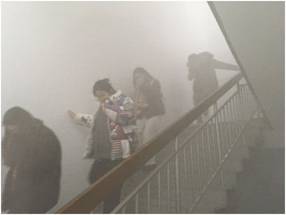 2点整,随着指挥组“灭火应急疏散演习开始”指令的下达,仓前慎园15号楼冒出滚滚浓烟,一时间火警声响成一片,各楼层人员在引导员带领下进行有序疏散,大家手持湿毛巾捂住口鼻从所在楼层有序“逃生”,在几分钟之内,完成了疏散。随后,由消防人员向同学们讲解灭火器的使用方法,之后每个同学独立完成了灭火器灭火操作。