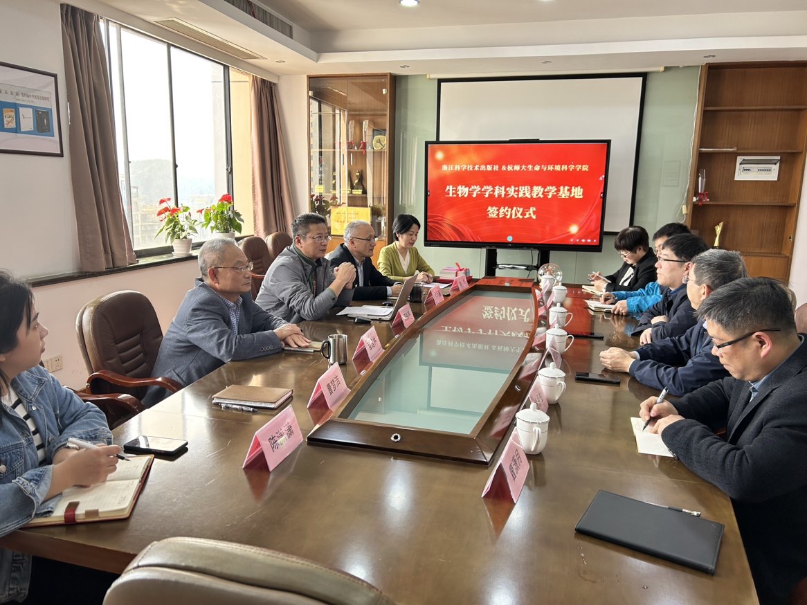 4月26日下午,高清色情-国产高清色情-高清性爱 党政班子领导、生物科学系主任和相关科室主任应邀前往浙江科学技术出版社参加生物学学科实践教学基地挂牌仪式。